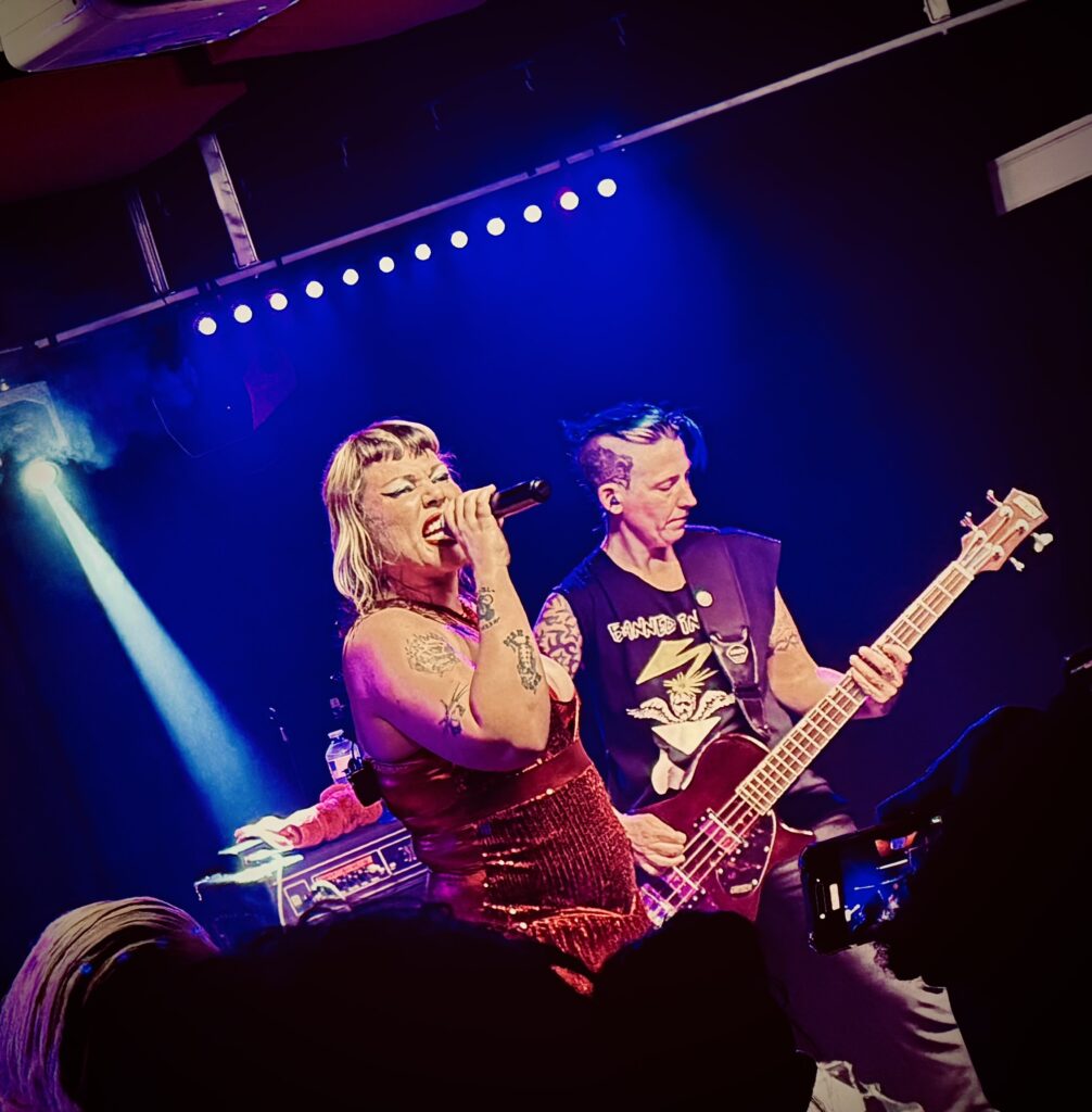 Split Dogs are the rock n’ roll business from the moment they hit the stage. Dressed in a sparkly red number, singer Harry is the main focus, it’s difficult to take your eyes off her. Some singers just have a certain presence, and Harri is one of those singers who delivers. And by the time the new single “Rock n’ Roll Business” has floored us about 4 songs in, it’s clear they have the tunes to match.